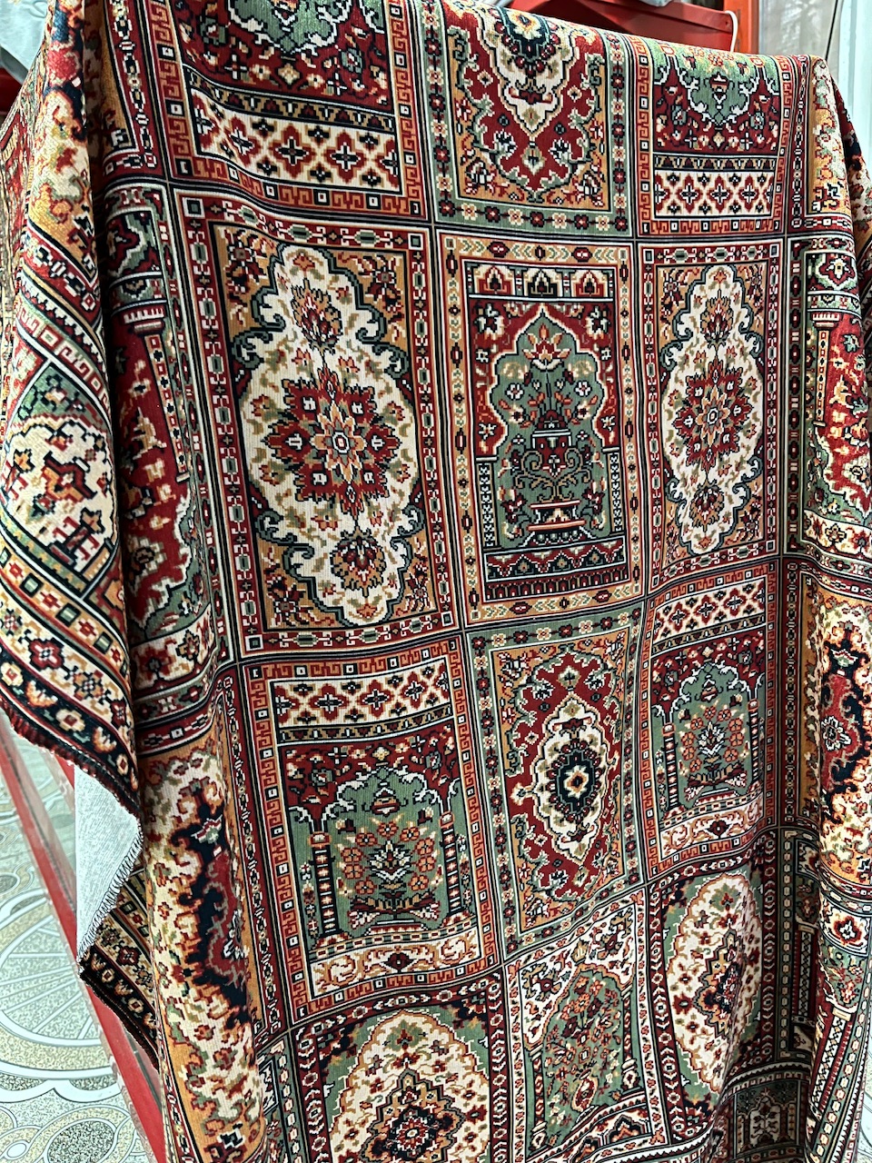 رومیزی مخمل مربع سنتی مدل خشتی